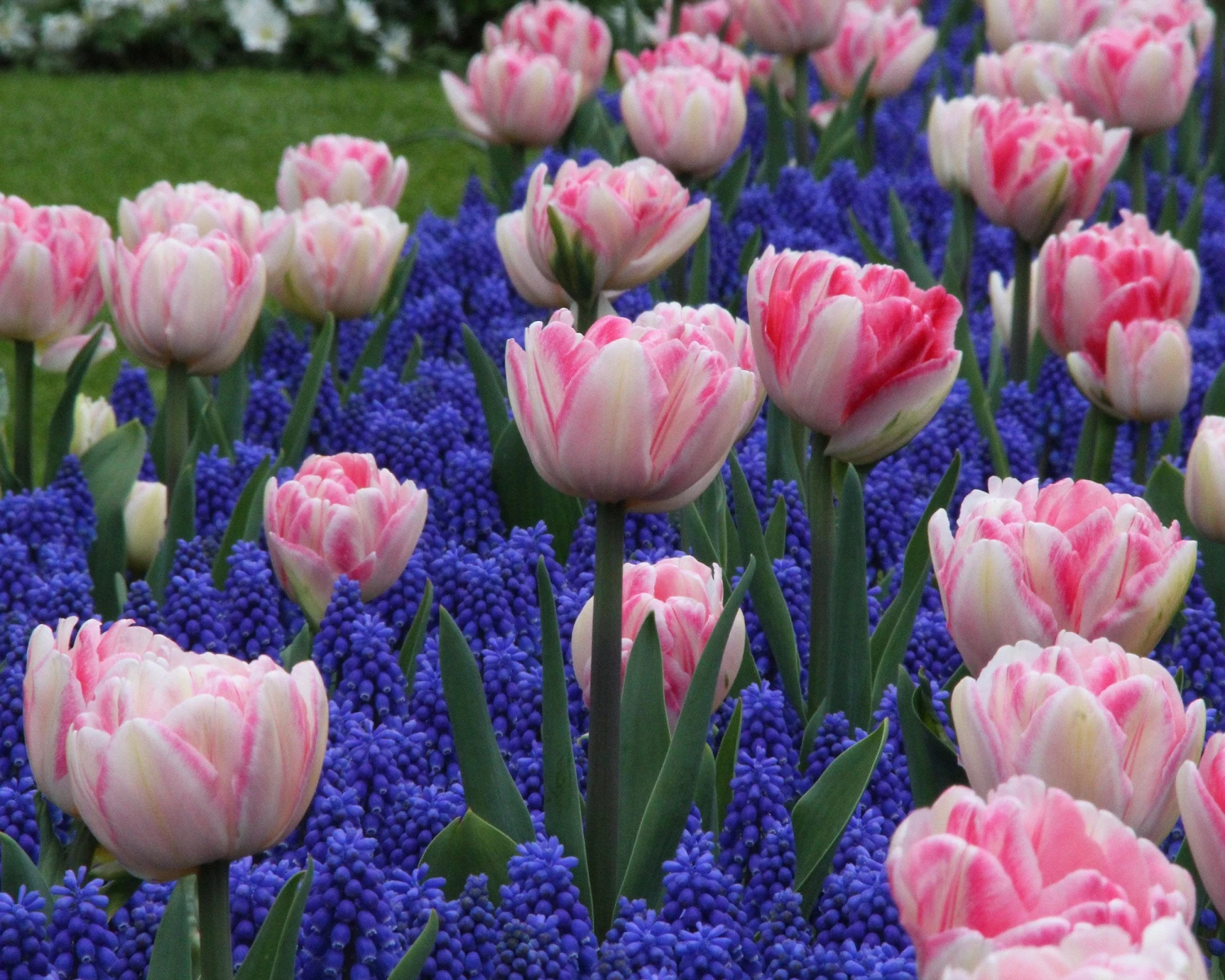 After years of testing this amazing collection at the famous Keukenhof Gardens, we are proud to present our Magenta Magic Collection – an enchanting mixture of Muscari armeniacum and Tulip ‘Finola’. This mid-to-late Spring flowering collection is a friendly and breathtaking combination wherein the lovely double pink Tulip ‘Finola’ is covered by an amazing blue carpet of grape hyacinths. No surprise we decided to choose this collection to be part of our Gracy’s Collections section!