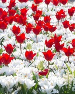With this collection, we’ve done all that for you so all you have to do is plant the bulbs together at the same time and wait for the display to come alive in spring. The varied heights of this collection gives you a dense underplanting of white crocus which shows off the stately bright red fluted tulips which float just above. This outstanding collection looks perfect in borders or containers alike, putting on a great performance in full sun or partial shade.