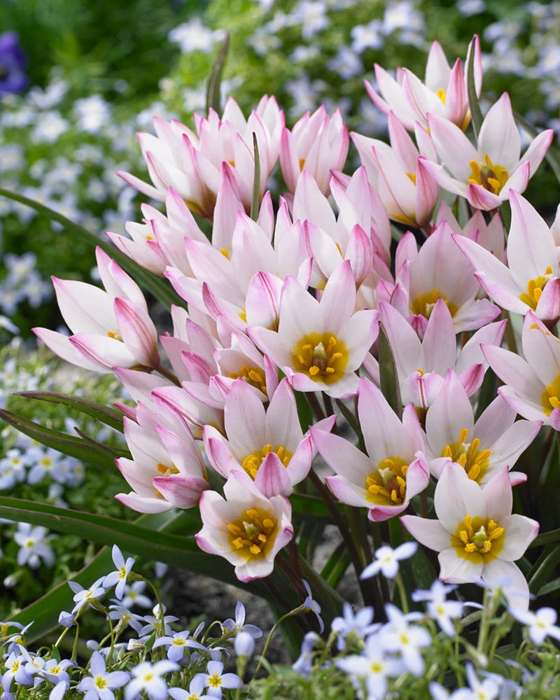 Tulip ‘Hilde’ is a strain of the Cretan tulip (Tulipa cretica). It is one of the smaller and less blowsy tulip species, with a charm all of its own. It’s a dainty-looker, and so beautiful, yet it is tough enough to withstand extreme winter cold. Producing up to three star-shaped flowers per stem, ‘Hilde’ starts by opening white, with a blush-pink interior with a deep cadmium yellow throat, and a pale pink exterior accented with darker purple-pink markings. It is rarely seen for sale!